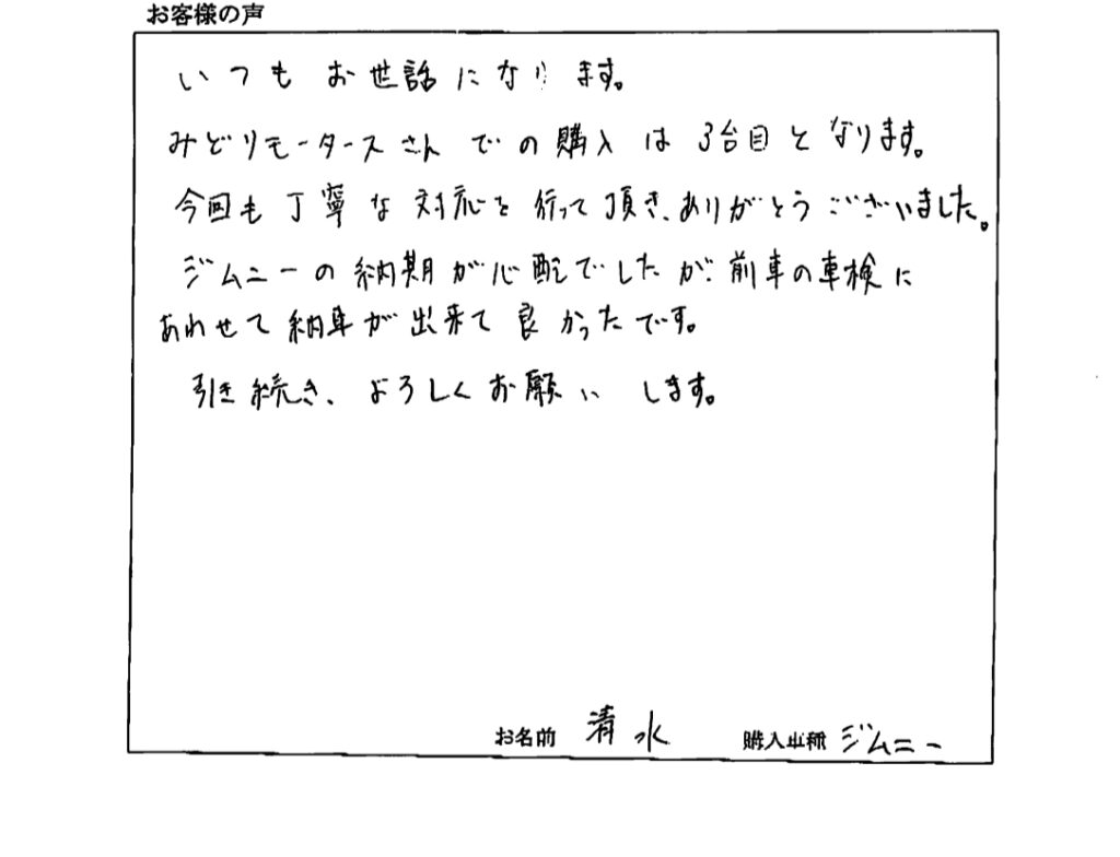 ジムニーをご成約のお客様のお声      スズキアリーナ北神