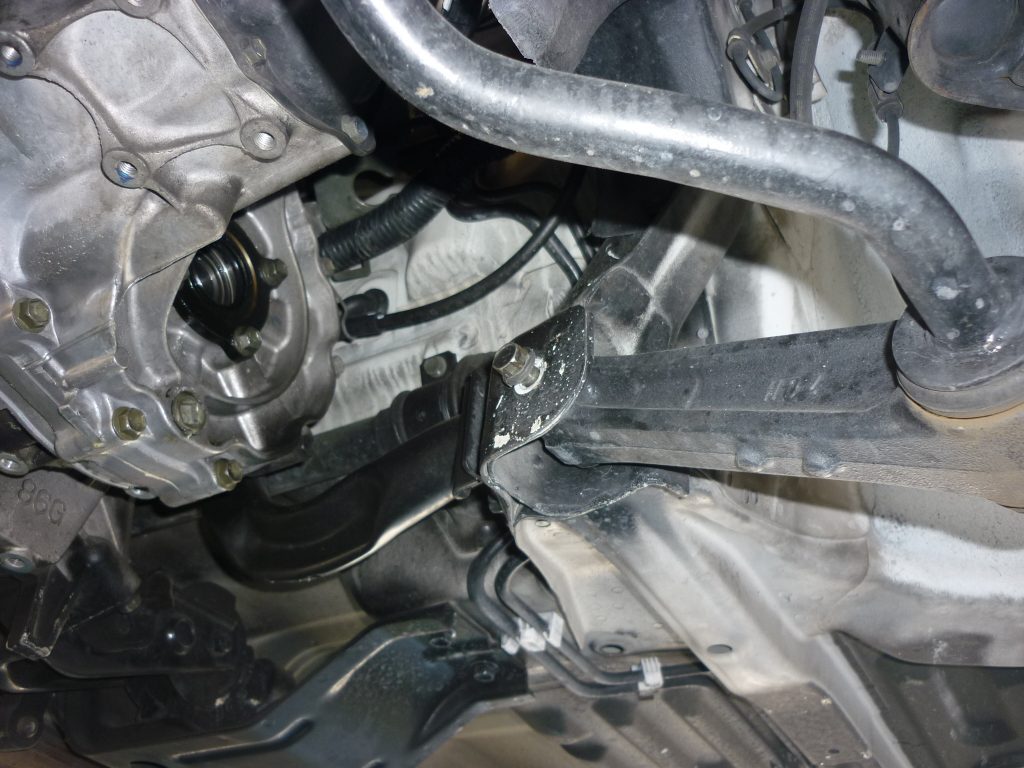 下回りを点検すると、写真ではわかりずらいですが、ハウジングの継ぎ目付近よりオイル漏れ発見!