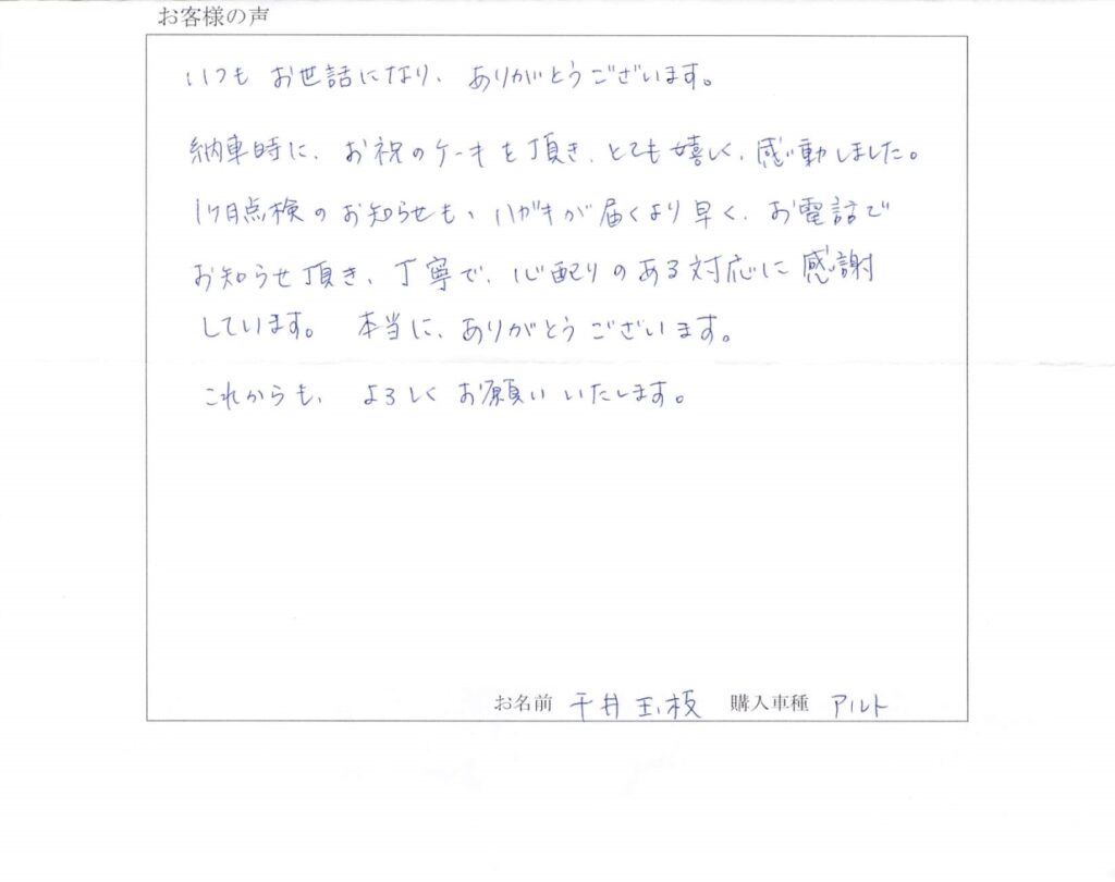 アルトをご成約のお客様のお声 スズキアリーナ北神