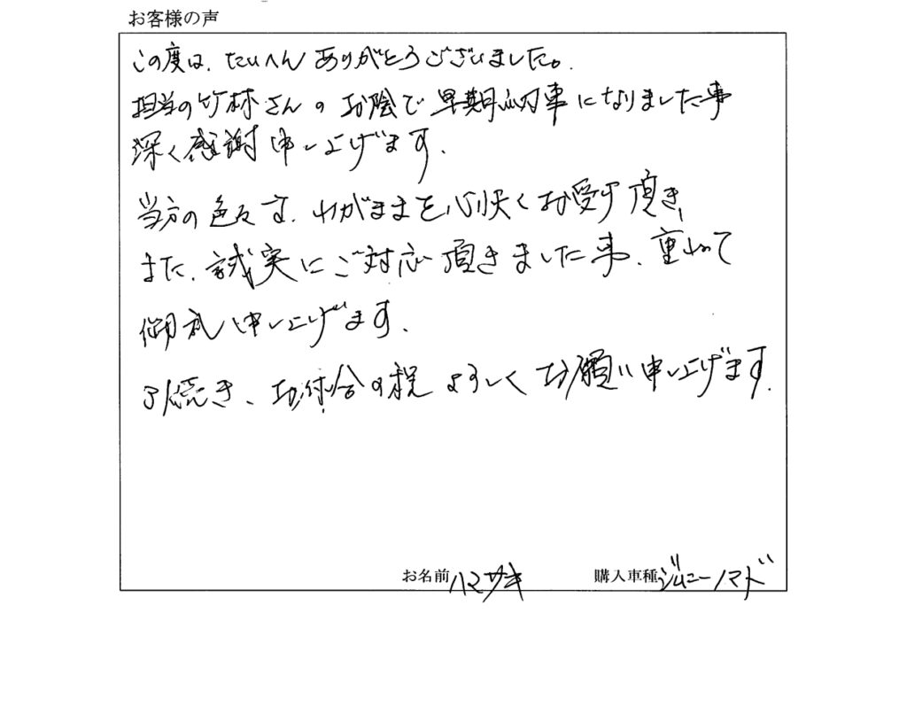 ジムニーノマドをご成約のお客様のお声 スズキアリーナ北神