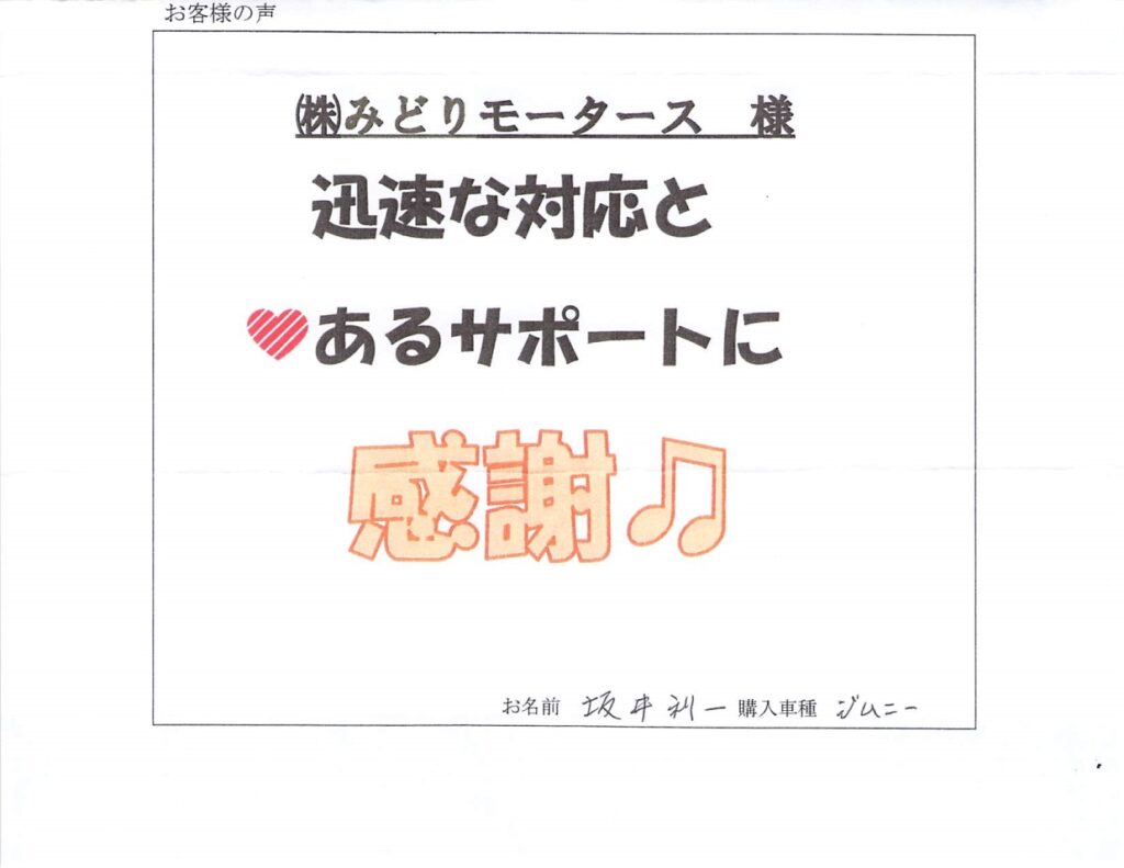 ジムニーをご成約のお客様のお声      スズキアリーナ北神